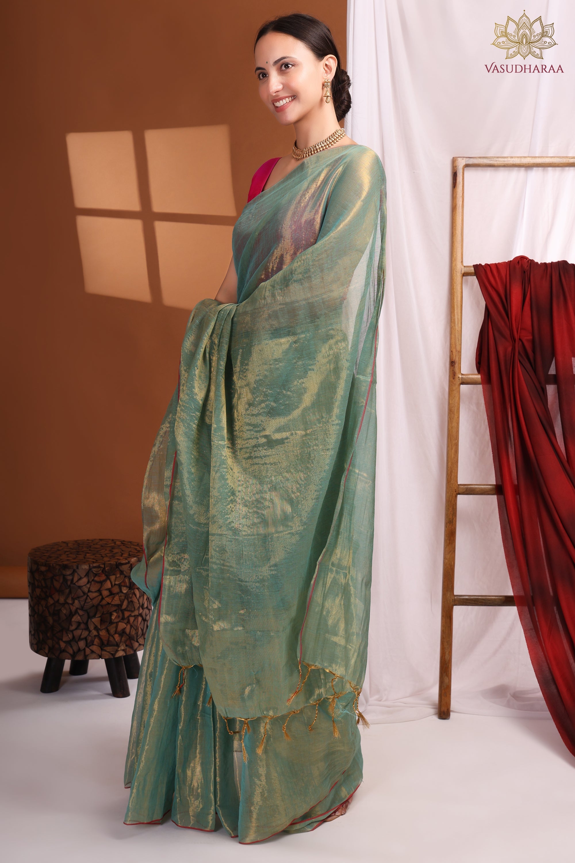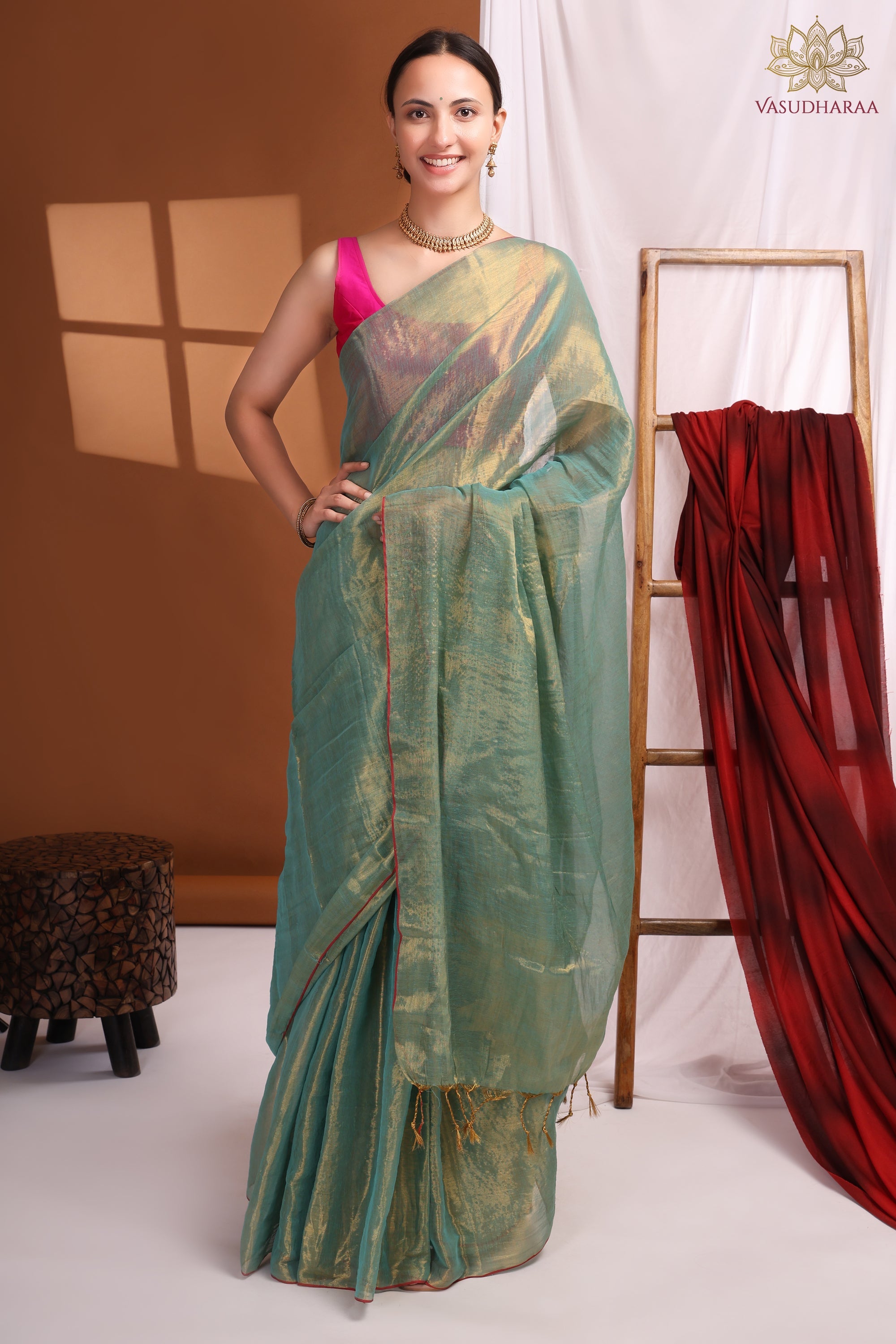 Step into refined tradition with our Tissue Cotton Saree—an elegant creation that blends cultural richness with timeless style. Carefully handwoven by master artisans, each saree is a unique expression of skill and heritage, capturing the spirit of India’s vibrant textile legacy.