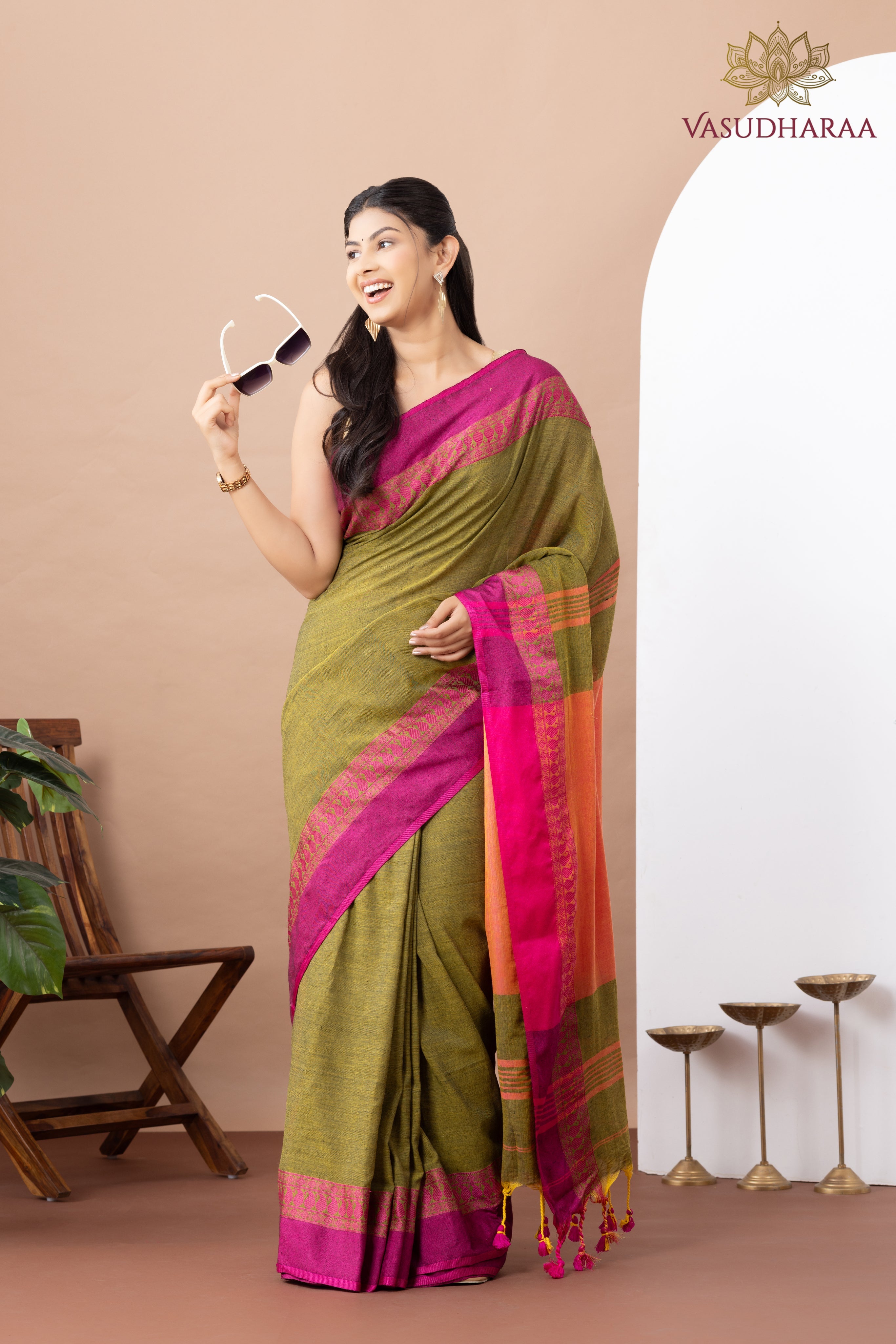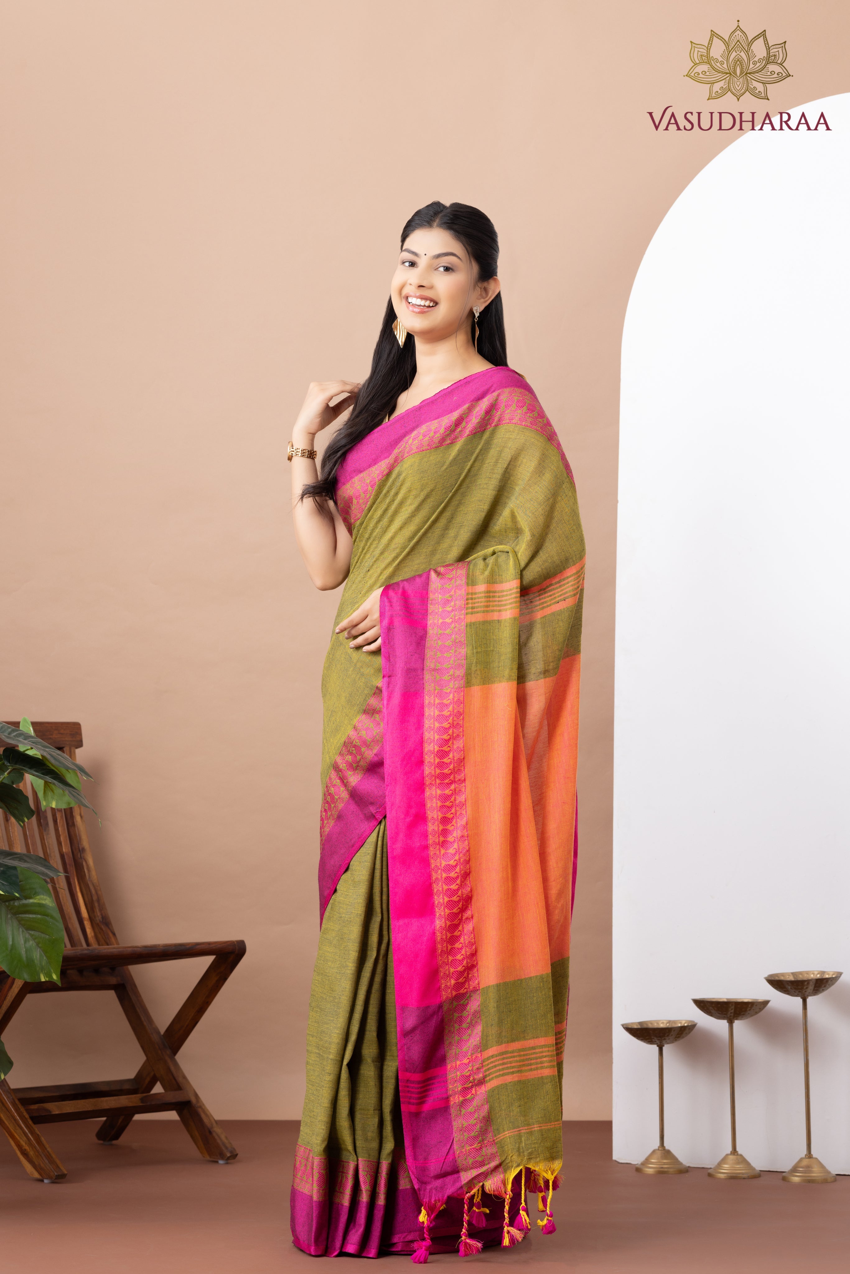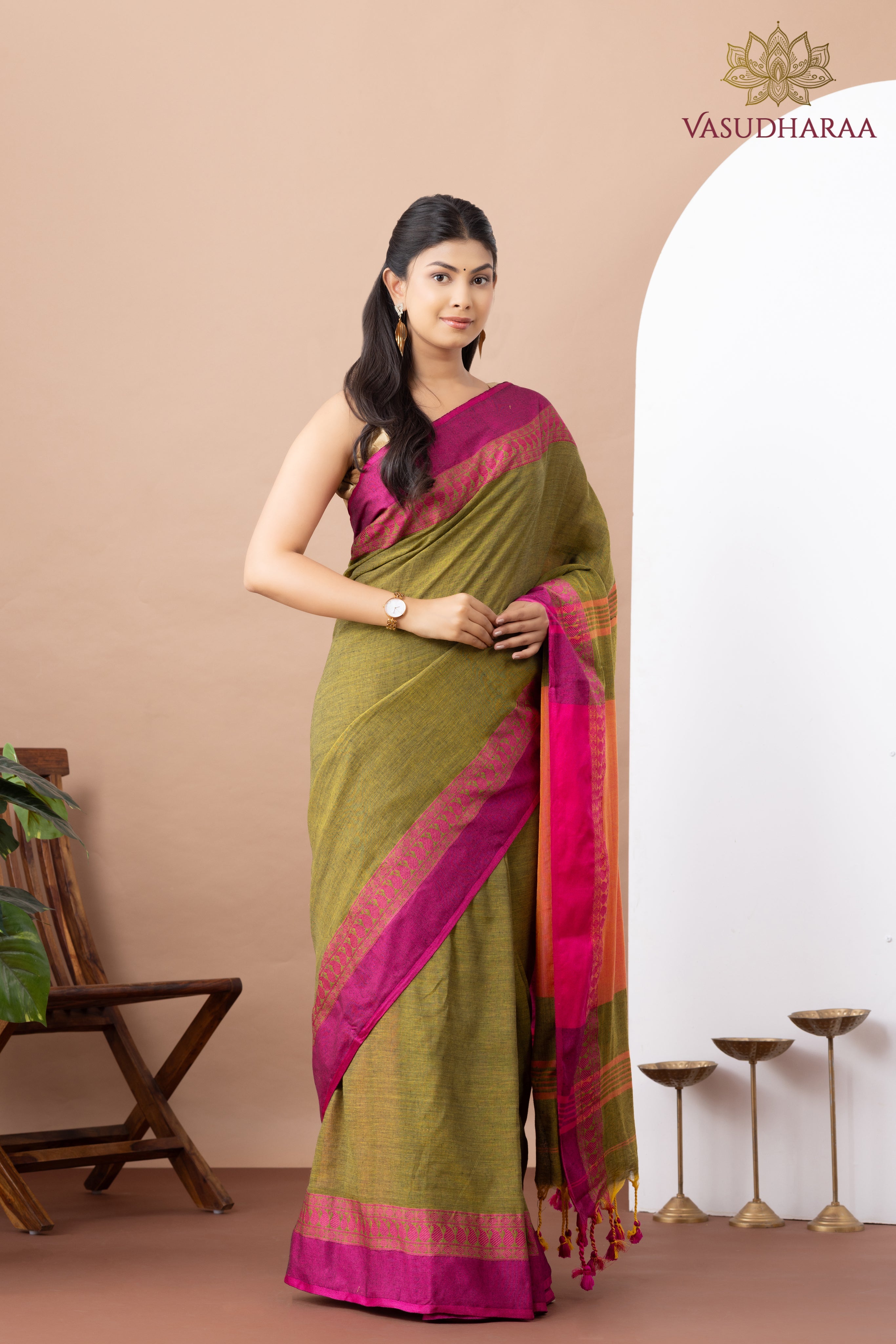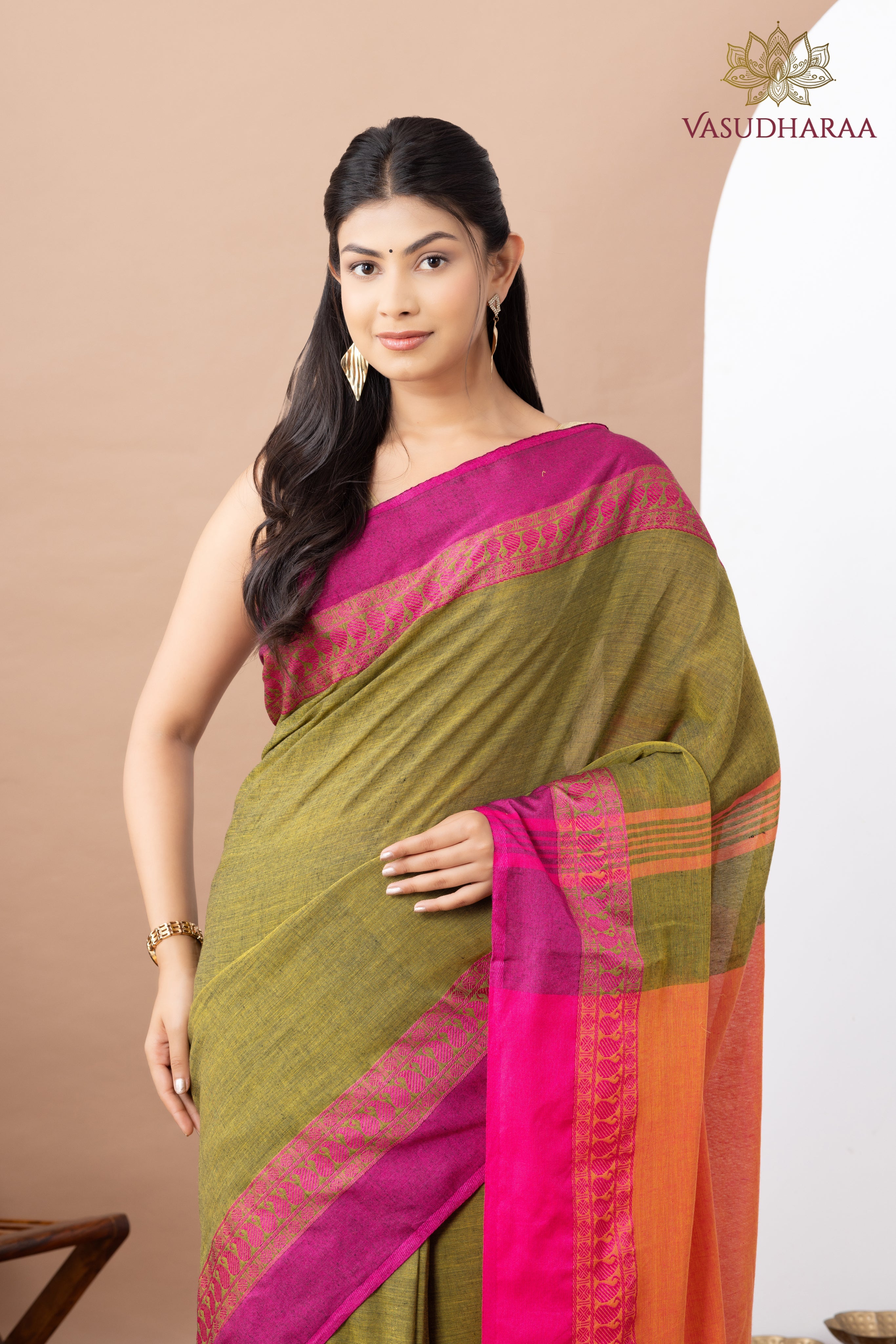 Discover the beauty of heritage in our handloom cotton saree, thoughtfully woven by skilled artisans. Featuring detailed patterns and a rich mustard hue, this saree brings a touch of warmth and sophistication to any occasion. Crafted from premium handloom cotton, it offers lasting comfort and strength. A perfect blend of style and sustainability, this saree honors India’s age-old weaving traditions with modern grace.