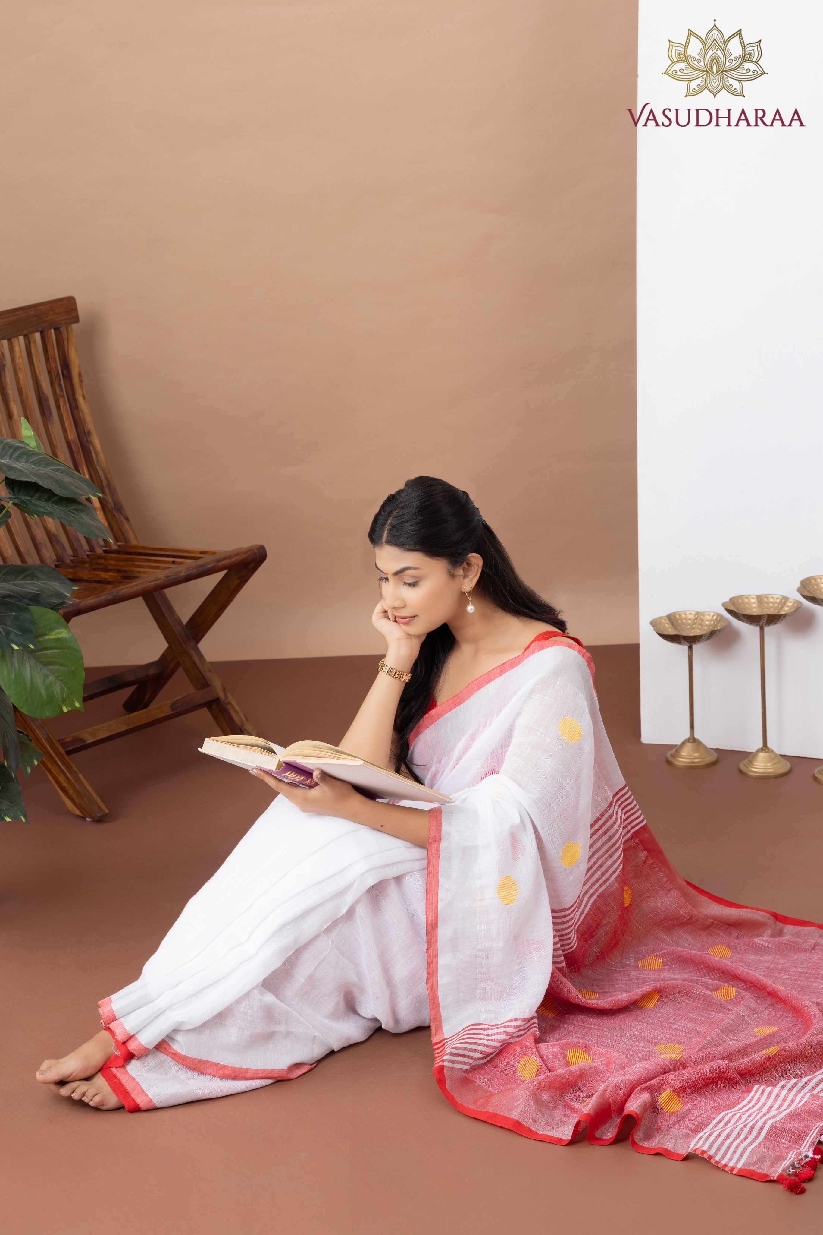 Discover the beauty of heritage in our handloom cotton saree, thoughtfully woven by skilled artisans. Featuring detailed patterns and a rich mustard hue, this saree brings a touch of warmth and sophistication to any occasion. Crafted from premium handloom cotton, it offers lasting comfort and strength. A perfect blend of style and sustainability, this saree honors India’s age-old weaving traditions with modern grace.